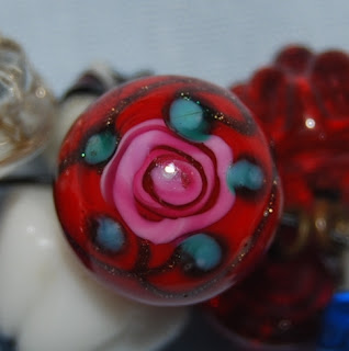 An all swirlback charmstring glass button string strung by Kelly Buffum. This is a string she has been a work in progress for over five years, created from buying buttons at shows and receiving buttons from friends for the string. The current button count is over 750 with very few duplicates. Often, viewers compare seeing it to 'looking at candy'.